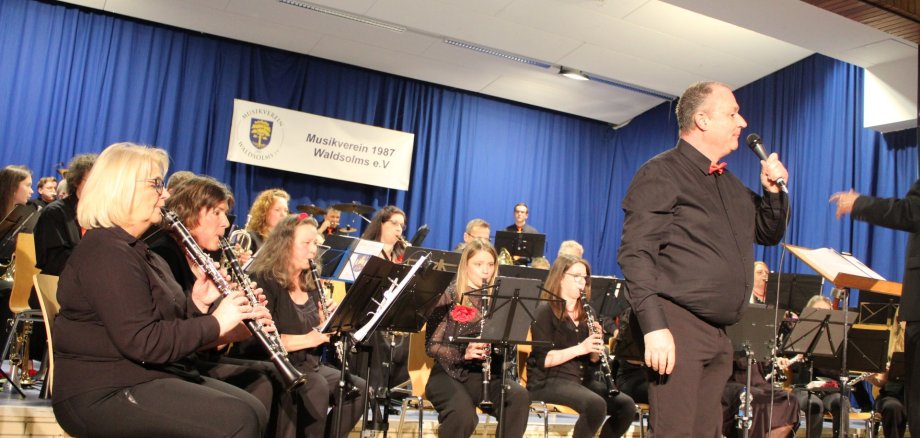 Unter der Leitung des Dirigenten Jochen Pietzsch zauberten die 47 Musiker gleich zur Eröffnung mit dem Konzertmarsch „Die Sonne geht auf“ von Rudi Fischer den Frühling in die Halle und entführten mit dem Konzertstück „Terra di Montagne“ des Komponisten Michael Geisler aus Tirol in die entrückten Bergwelten.