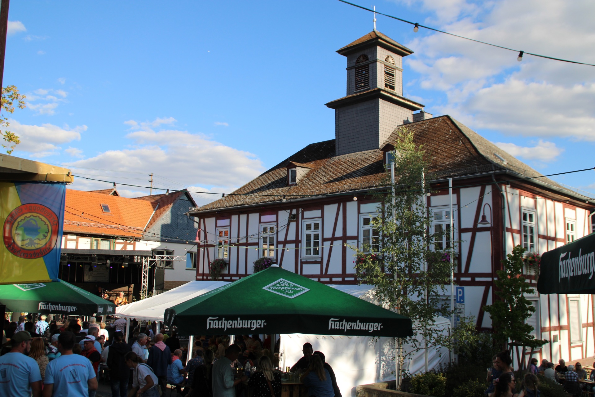 Mit einem der kleinsten Festumzügen, an dem die Brandoberndorfer Presskoppsingers je teilgenommen haben, startete ihr „Apfelweinfestchen“ auf dem Lindenplatz vor dem historischen Waldsolmser Rathaus. An zwei Tagen steppte hier der Bär zu den Feierlichkeiten des 50-jährigen Jubiläums der Presskoppsingers und zum 200-jährigen Jubiläum des als Amtshaus im Jahre 1825 errichteten Rathauses.